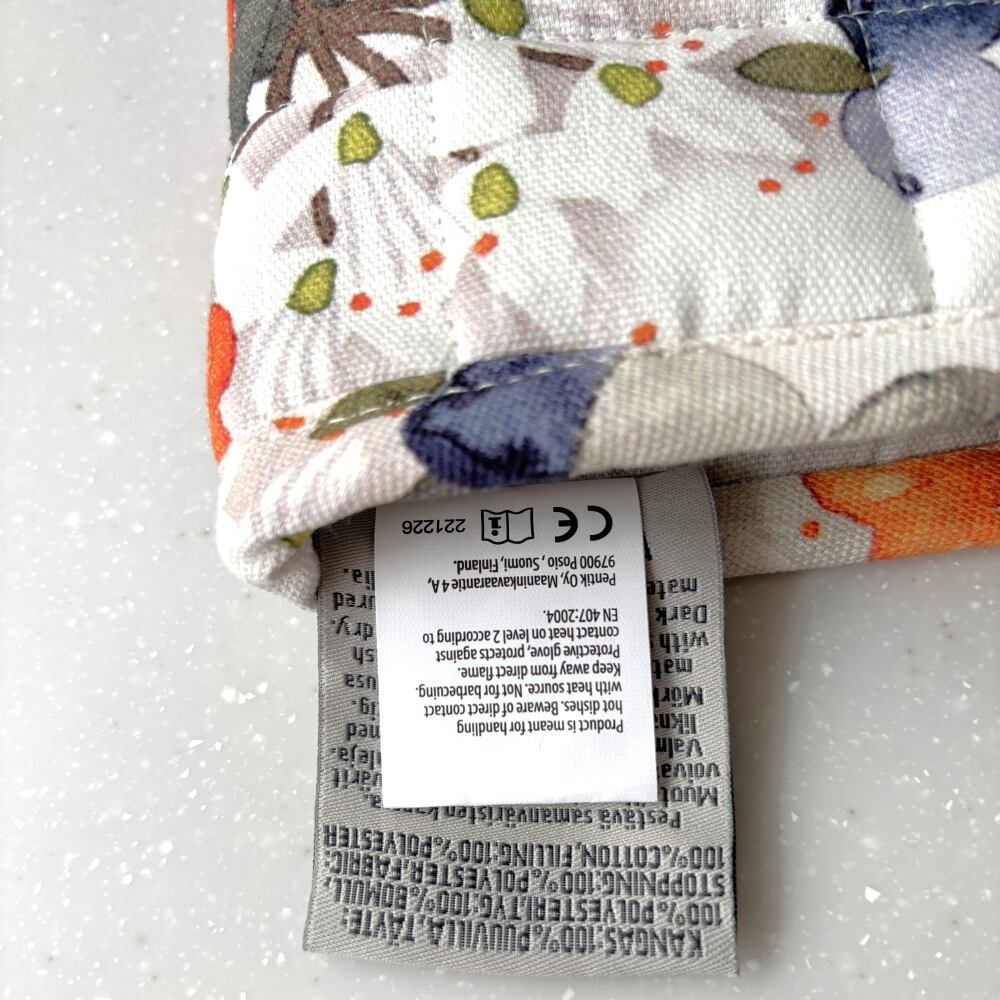 「Metsämarja」オーブンミトンのサイズは16×31cm。素材はコットン100%(中綿はポリエステル)。