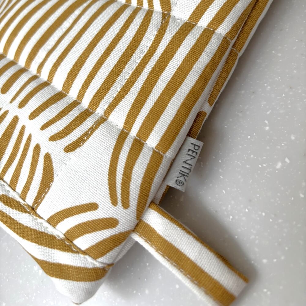 「Vilja(ヴィリヤ)」のポットホルダーは、21×21cmと手になじみやすいサイズ感。温かいお料理を運ぶときや鍋の取っ手をつかむときなど、キッチンでの熱いシーンをしっかりサポートしてくれます。60度までの洗濯機洗いも可能で、毎日清潔にお使いいただけます。