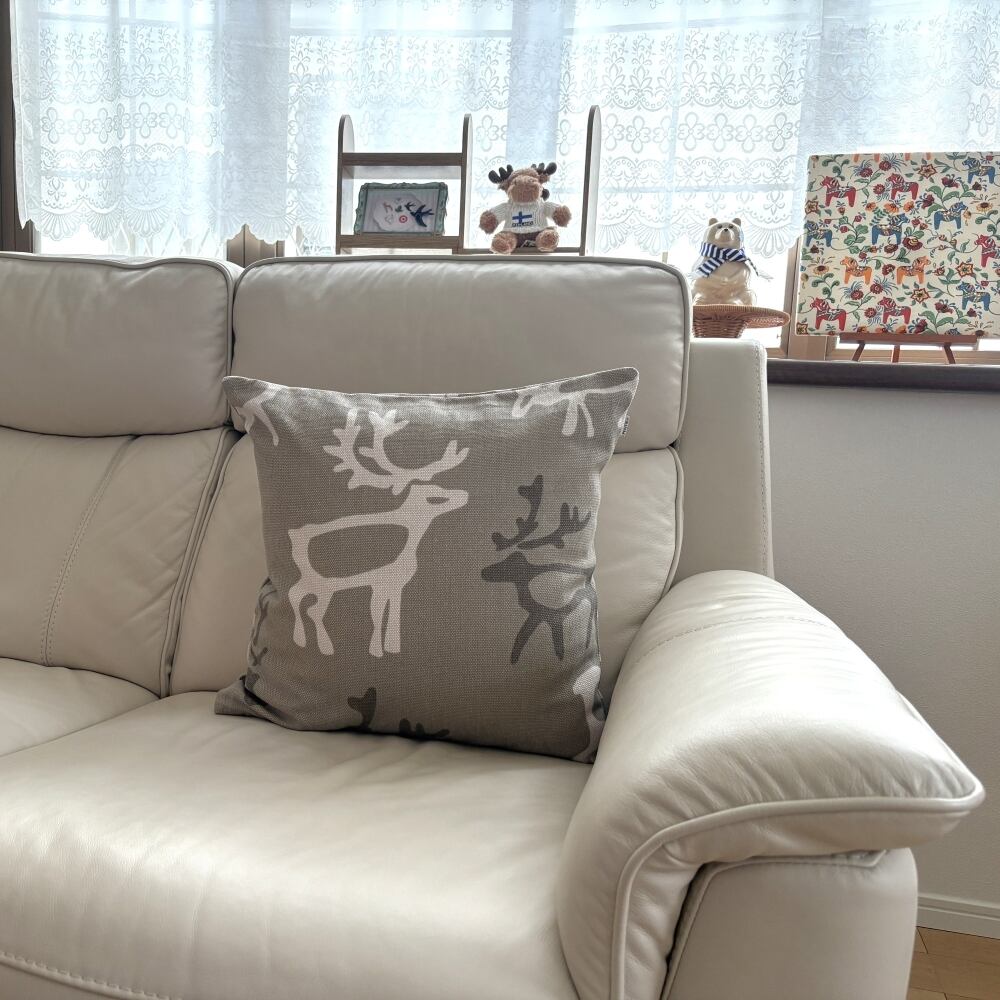素材は100%コットンで、やさしい手触りが魅力。北欧の物語を感じさせるデザインとぬくもりのある素材で、リビングやベッドルームにあたたかさと上品なアクセントを添えてくれます。