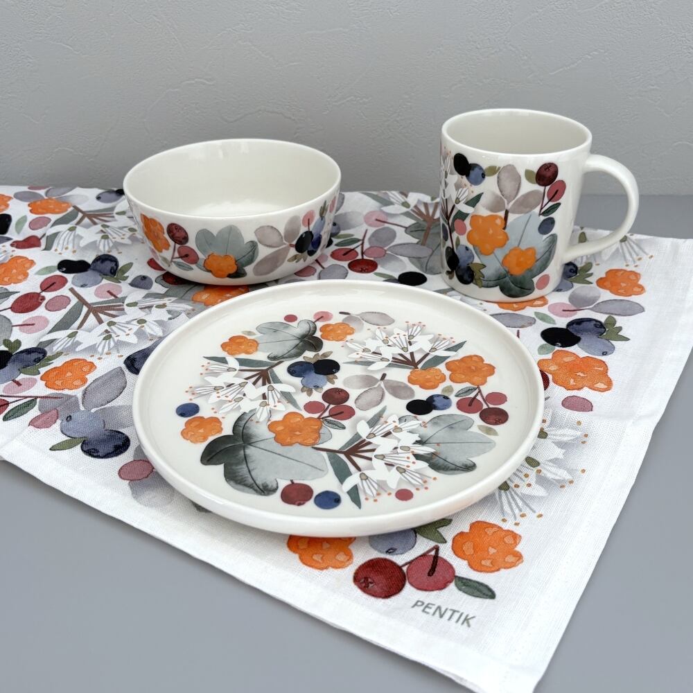 この「Metsämarja(森のベリー)シリーズ」は、その豊かな季節の記憶を一枚の器に写し取った作品です。