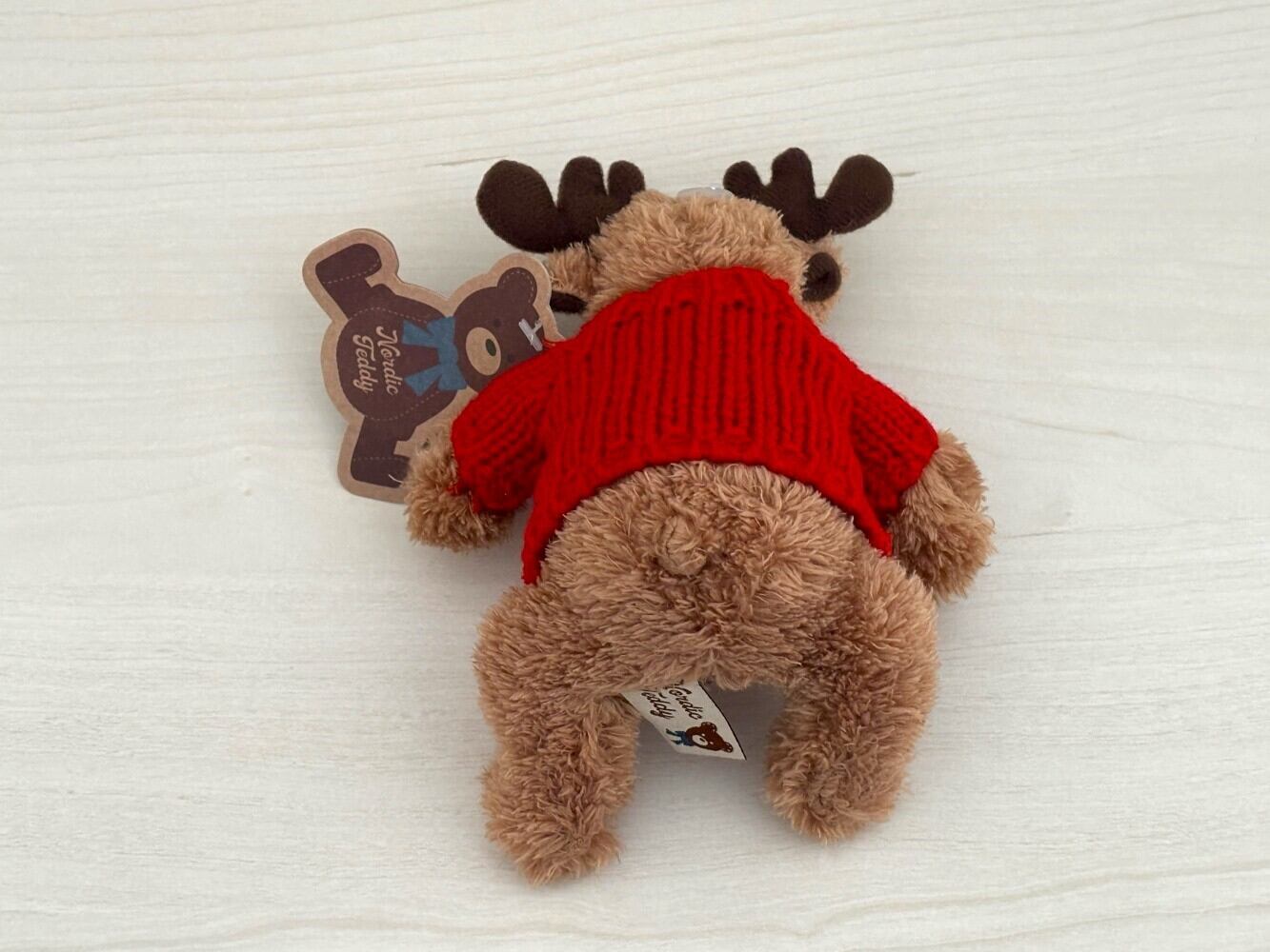 【NORDIC SOUVENIR】ムース スモール フィンランドセーター REDは、フィンランド国旗をモチーフにしたセーターを身にまとった可愛いムース(ヘラジカ)の縫いぐるみです。ふわふわとした質感が心を和ませてくれます。座った姿勢が愛らしく、一緒にいるだけで温かさを感じ、見る人を笑顔にしてくれることでしょう!セーターは、着せ替えが可能なので、お裁縫が得意な方は、季節ごとに手作りのお洋服を着せ替えて楽しむこともできます。今日はどんなスタイルにしようか?考えるだけでワクワクしますね♪
