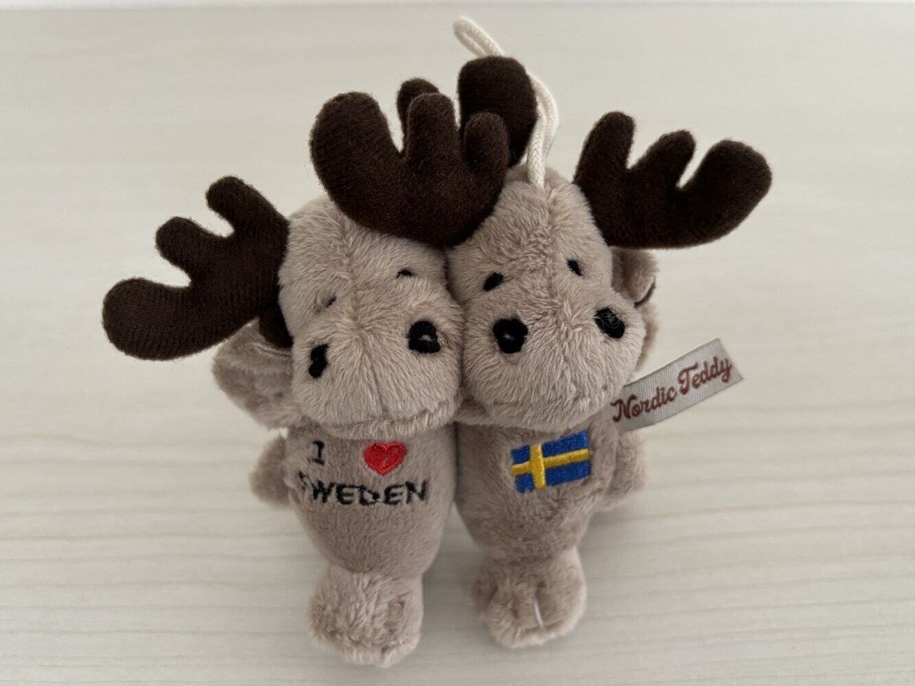 北欧のお土産【NORDIC SOUVENIR】ハグするムースぬいぐるみ10cm スウェーデン グレーは、一目見ただけでその可愛らしさに心が温かくなるでしょう。まるで仲の良い者同士が相手を優しく抱きしめているような姿が、とても愛おしい存在に感じます。このぬいぐるみは、キーホルダーやバッグアクセサリーとしても楽しめます。マジックテープを使用しているため、ハグをしている状態から離すことが可能ですが、密着しているところが本当に可愛いんです♪大人の方々にも癒しを与えてくれる、このハグするムース。お出かけ中の待ち時間などに手に取って触れることで、気持ちをほっこりと和ませてくれます。一緒に過ごす時間が増えるにつれて、愛着もさらに深まることでしょう。贈り物としても喜ばれる一品です。
